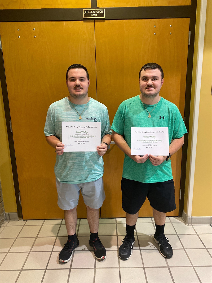 Lonnie Whitley and Kelton Whitley are the 2022 recipients of the John Henry Dorminy, Jr. Scholarship from Wiregrass Georgia Technical College.