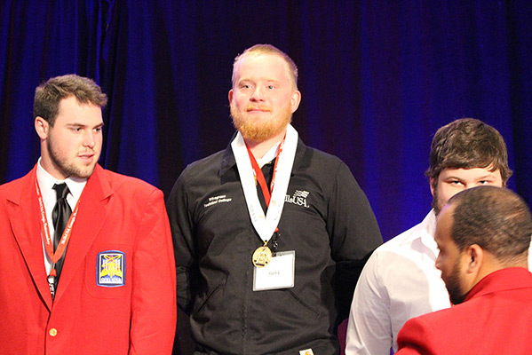 Pictured center is Morgan Davis, Wiregrass welding graduate, who competed in the state SkillsUSA Welding competition in 2019 and earned a gold medal; in 2018 he brought back a silver medal. Davis is employed at Hunt Industries as a welder here in Valdosta.